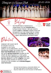- Na een van de danslessen zal er een ouderdansles en een ouderdiner plaatsvinden. Zo kunnen de ouders van de debutanten alvast kennismaken met elkaar en bij interesse hun klassieke danspassen aanscherpen voordat het Wiener Ball zal plaatsvinden. U als debutant kunt kosteloos deelnemen aan dit diner.